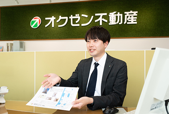 各店舗・社内の各部署間を越えて、バックアップできるのがオクゼン不動産の強みです。例えば賃貸ショップにて、売買や資産活用のご相談をいただいても問題ございません!