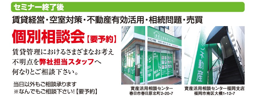 セミナー終了後、賃貸経営・空室対策・不動産有効活用・相続問題・売買などの相談会を開催します。