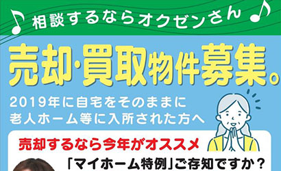 オクゼン不動産では、売却・買取物件や管理物件を募集しています。 4月16日(土)の西日本新聞ににも掲載されますので、ぜひご覧ください。 不動産を売却するなら今年がオススメ。税額減税が受けら